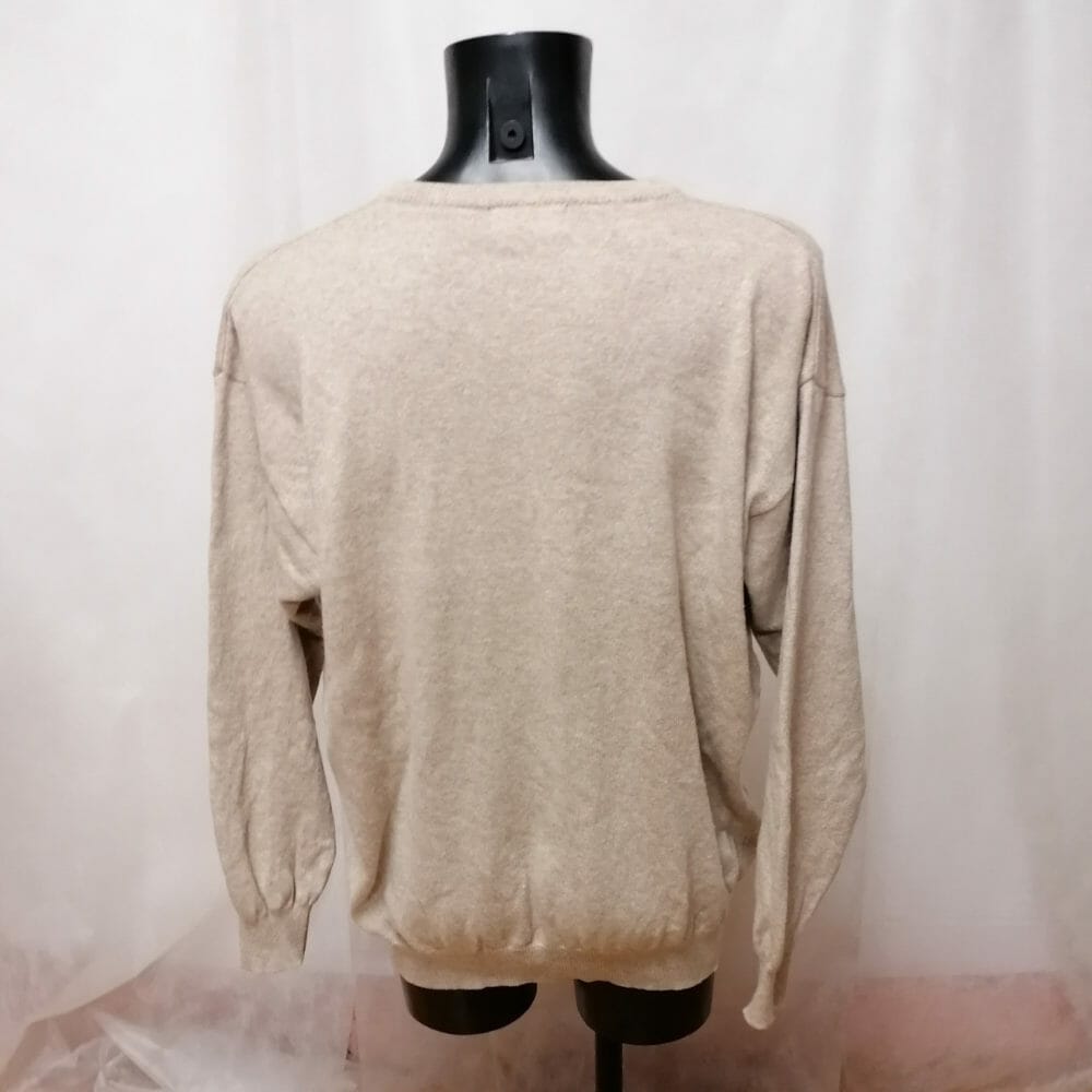 Maglione da uomo in cashmere (cachemire) beige, scollo a V con lavorazione al bordo.