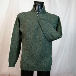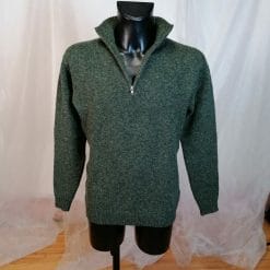 Maglione da uomo verde 100% shetland M. Hemingway vintage, verde, con zip al collo.