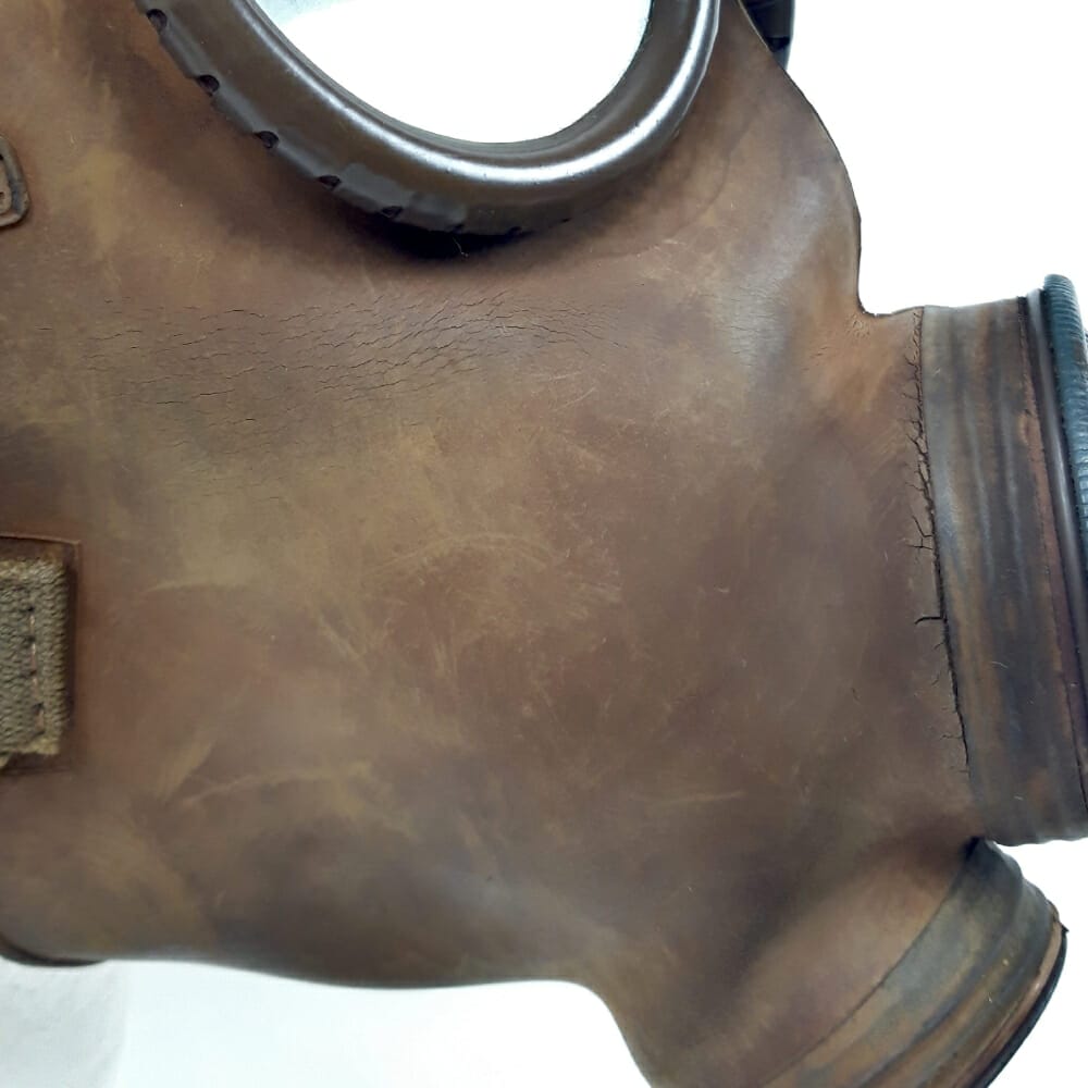 Eccezionale maschera antigas T35 della ditta I.A.C. (Industria Articoli Caoutchouc di Tivoli). Usata durante la Seconda guerra Mondiale dal Regio Esercito Italiano. Si presenta in buone condizioni generali, leggere crepature nella gomma; gli oculari presentano tracce di umidità tra i due strati di vetro. Completa di filtri del 1939 e 1940; di dischi antiappannanti (per maschere M. 31-33 e T.35) e di custodia in canapa in buone condizioni.