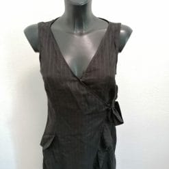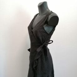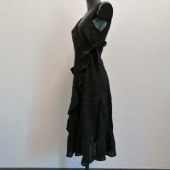 Max Mara Weekend, abito 100% lino femminilissimo. Bordato con volant si avvolge a portafogli grazie ad una serie di bottoncini nascosti e una cintura.