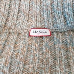 Max&Co cardigan in maglia 70% acrilico 30% lana, chiusura con zip e collo alto. Molto bello, filo intrecciati azzurro, panna e cammello.