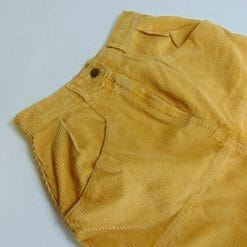 Minigonna in velluto a coste color senape, originale Sisley, linea Dungaree, vintage Anni ’80. In buone condizioni, è un capo di rara autenticità.