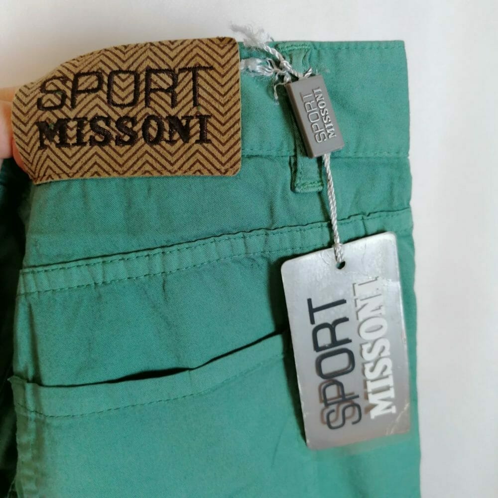 Missoni jeans in denim cinque tasche leggeri, verdi. Composizione 96% cotone 4% elastan. Vestibilità classica, gamba dritta, elegante e originale. Prezzo originale 115 €.