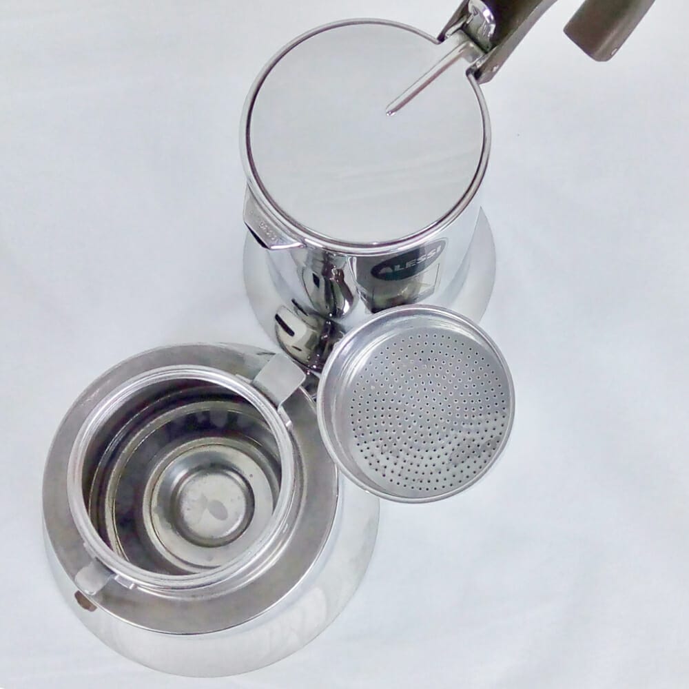 Moka Alessi 9090/M caffettiera espresso da 10 tazze, in acciaio inossidabile 18/10 con fondo adatto anche alla cottura a induzione. Icona del Design italiano degli anni ’70 e progettata da Richard Sapper, riceve il premio Compasso d’Oro nel 1979 ed entra a far parte della collezione stabile del MOMA di New York. L’apertura tramite maniglia a scatto è tra le varie innovazioni apportate al prodotto. In ottime condizioni, leggeri segni sul corpo macchina.