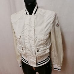 Moncler originale favoloso giubbino corto avorio, impermeabile e non imbottito, alta fascia elastica in vita.