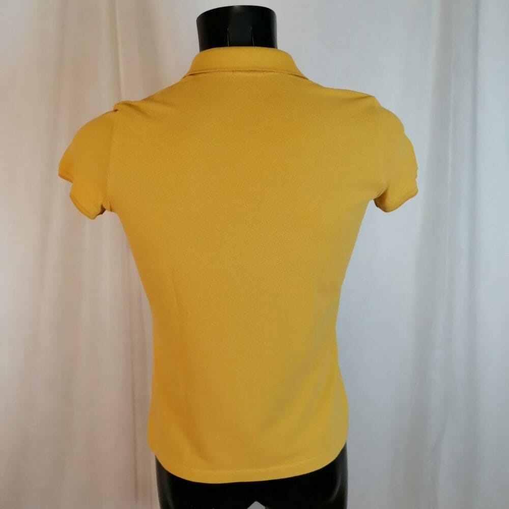 Casual ma elegante questa polo mezze maniche Moncler che osa con un giallo sbarazzino leggermente virato sul senape. Logo ricamato ben visibile sul petto, l’etichetta con la composizione è stata tagliata ma senz’altro si tratta di un capo in cotone.