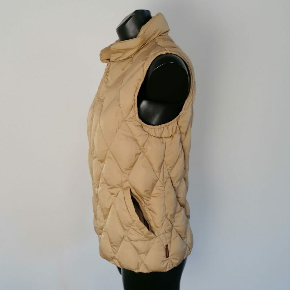 Moncler gilet imbottito, smanicato trapuntato. Colore beige con tono oro, femminile.