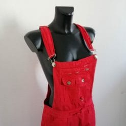 Onyx, bellissima salopette coverall anni 90 in cotone rosso. Modello leggero, gamba corta con lacci sul fondo, tasconi cargo, bretelle regolabili.