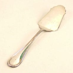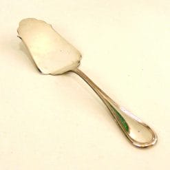 Elegante paletta sagomata in argento ‘800 per servire dolci a fette, corpo unico con il manico sobriamente decorato.