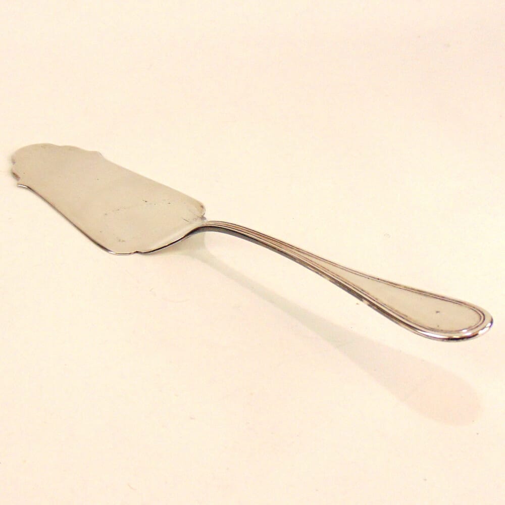 Elegante paletta sagomata in argento ‘800 per servire dolci a fette, corpo unico con il manico sobriamente decorato.