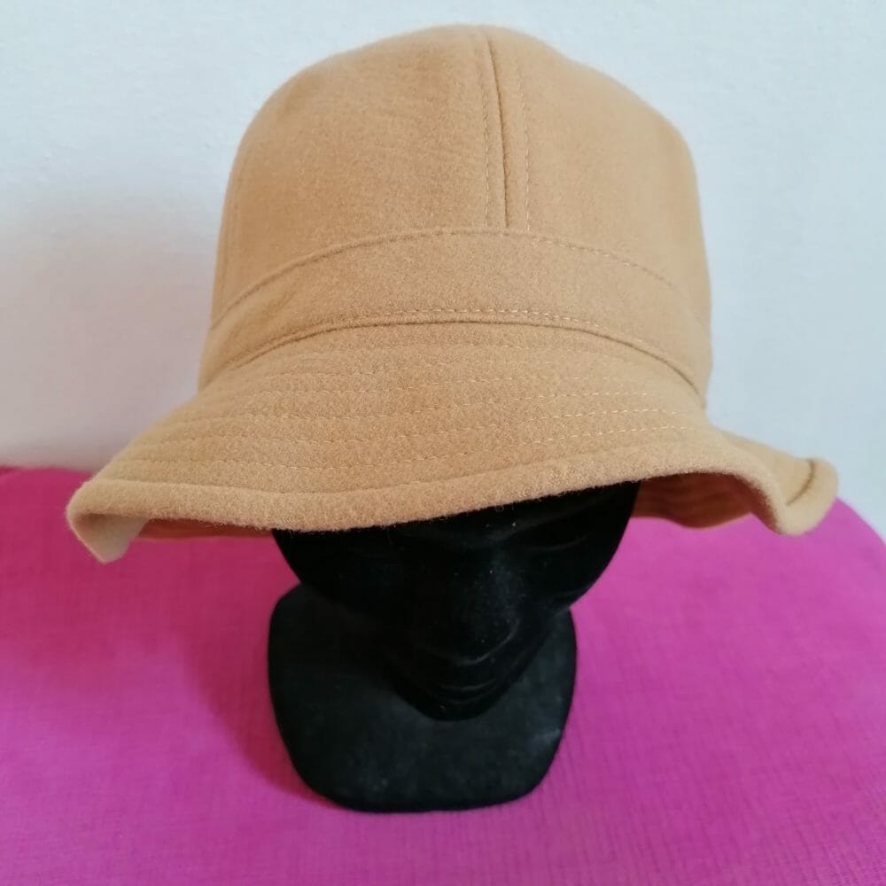 Panizza leader italiano nella manifattura dei cappelli propone quesito modello unisex a secchiello, color cammello, in lana morbidissima. Come nuovo.