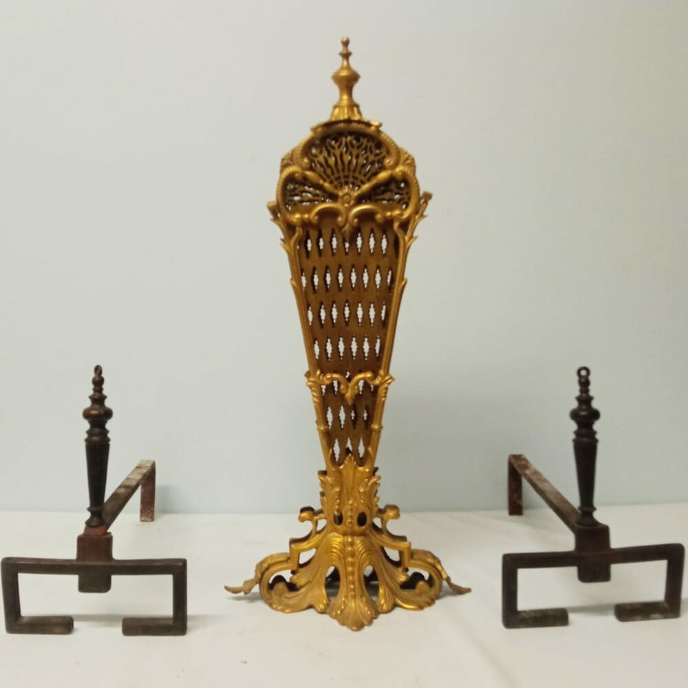 Aggiungi un tocco di eleganza storica al tuo camino con il parascintille per camino in ottone. Questo splendido accessorio, prodotto nella prima metà del ‘900 e realizzato con uno stampo con oltre 300 anni di storia, rappresenta un connubio perfetto tra bellezza e funzionalità. Con una struttura in ottone di alta qualità, il parascintille è in ottime condizioni di conservazione e si distingue per il suo design raffinato.