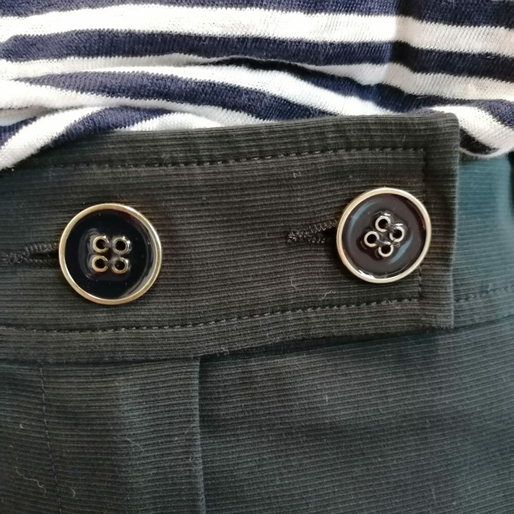 PennyBlack gonna navy con tasche e bottoni. Passanti in vita, bottoni blu e oro.