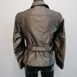 Peuterey giacca corta doppiopetto, sfoderato, leggera in poliestere. Linea grintosa con cintura, multitasca. Colore dagli accenti metallici.