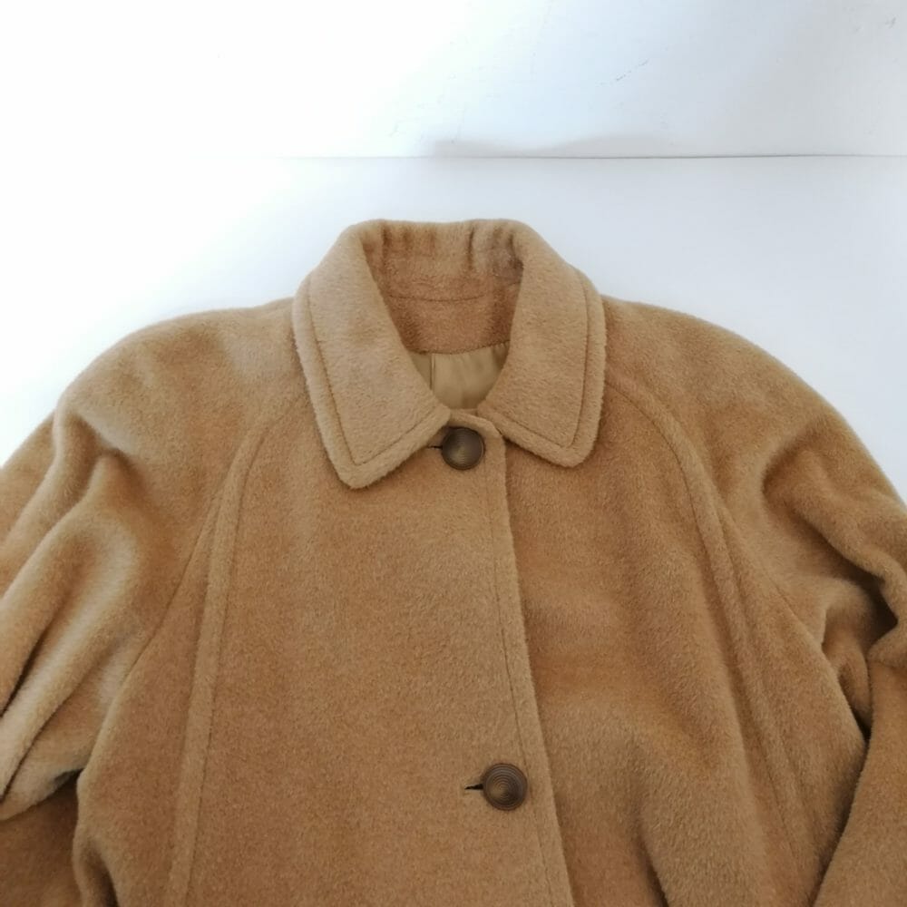 Piacenza cappotto retrò in pura lana vergine, tonalità biscotto, elegantissimo, taglio classico e maniche raglan. Fascino senza tempo per questo capo versatilissimo caratterizzato dall’alta qualità dei materiali e della confezione.