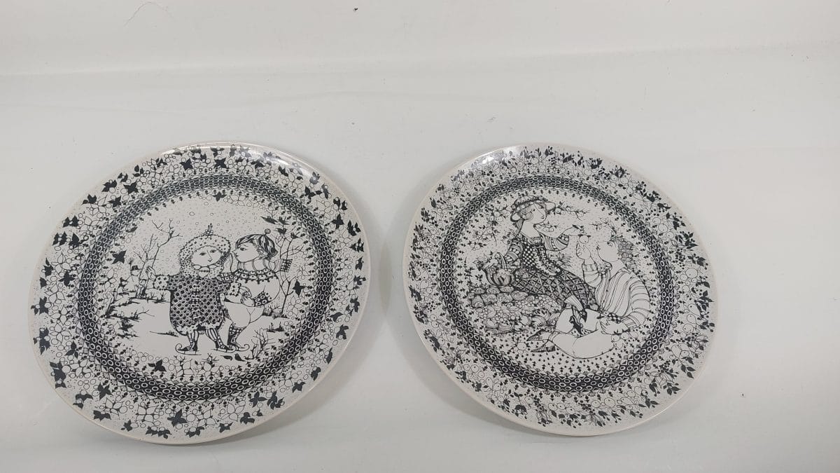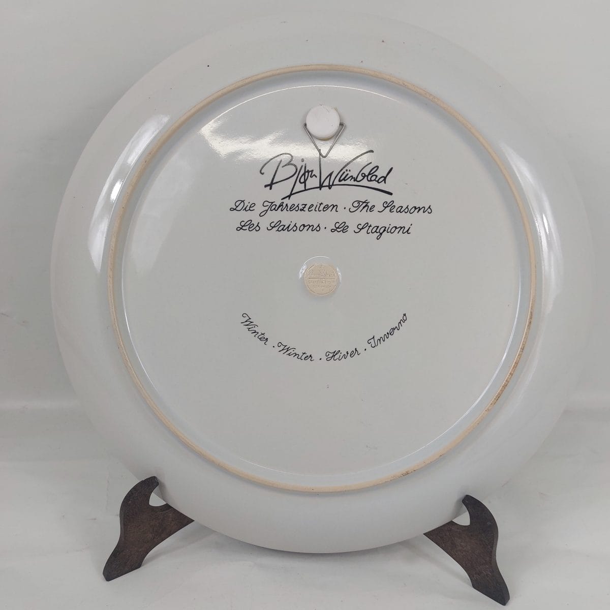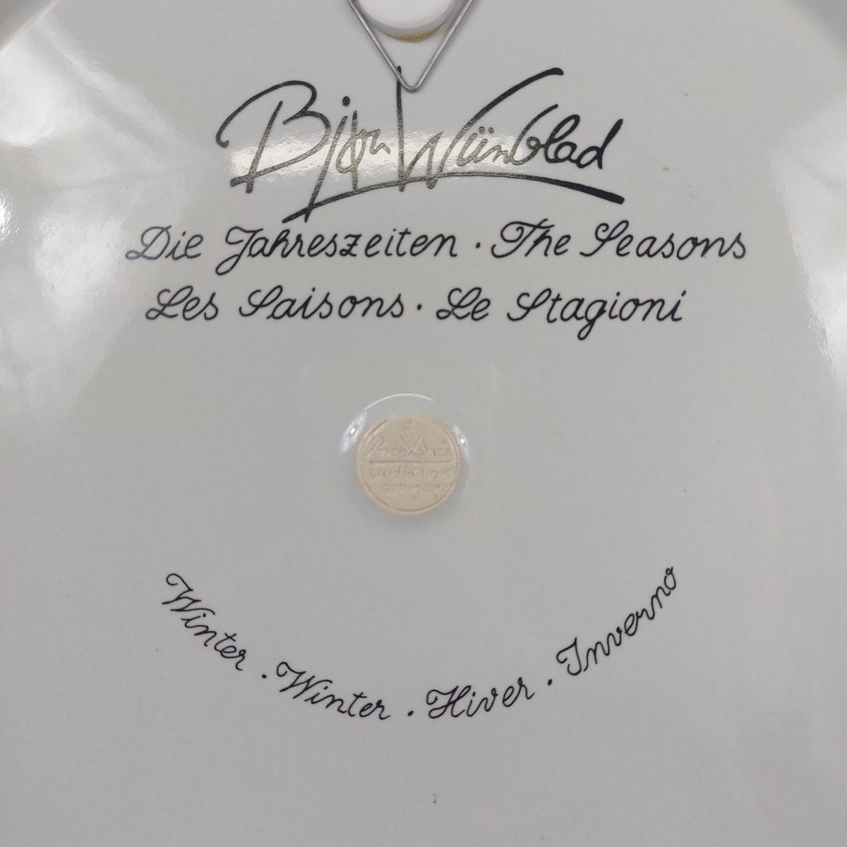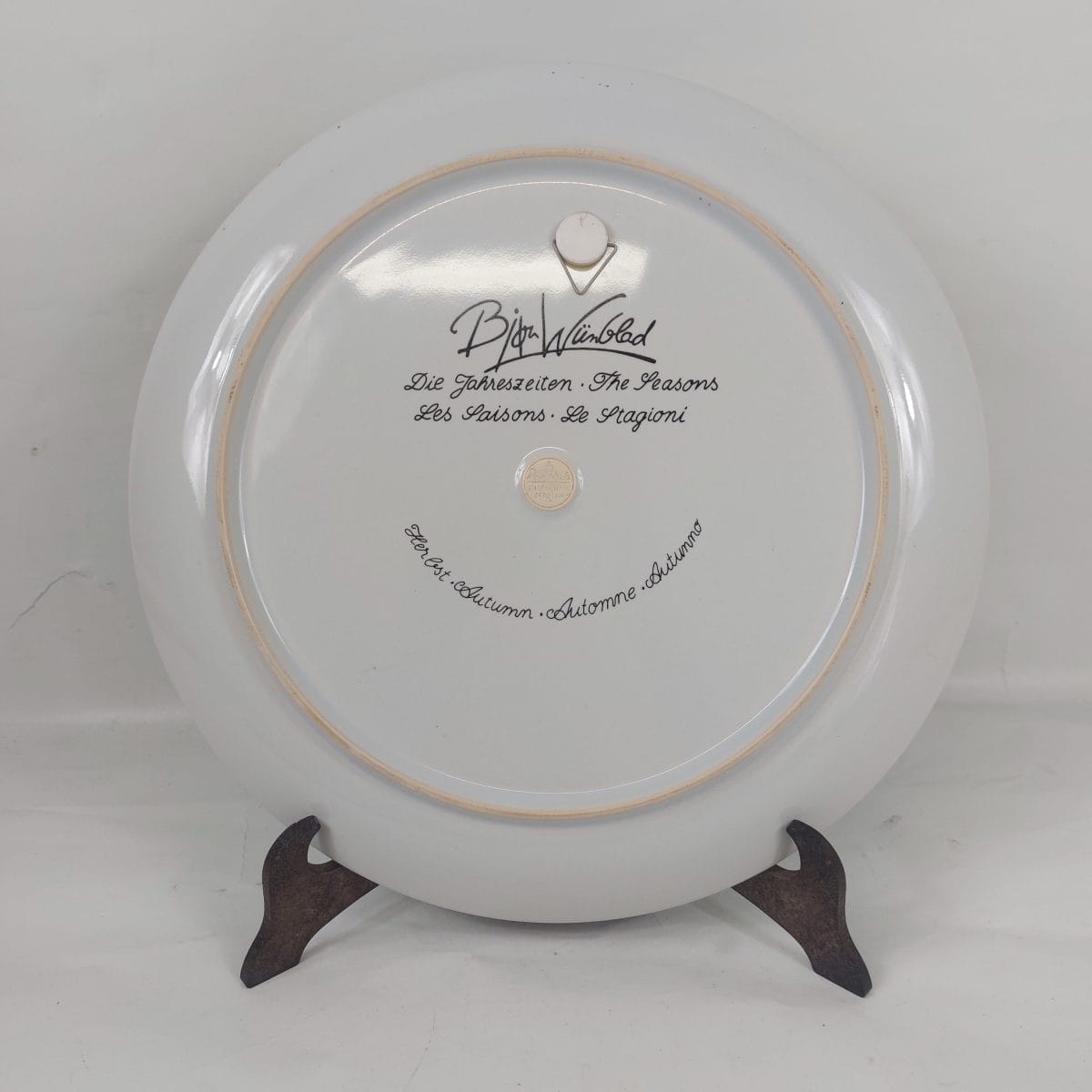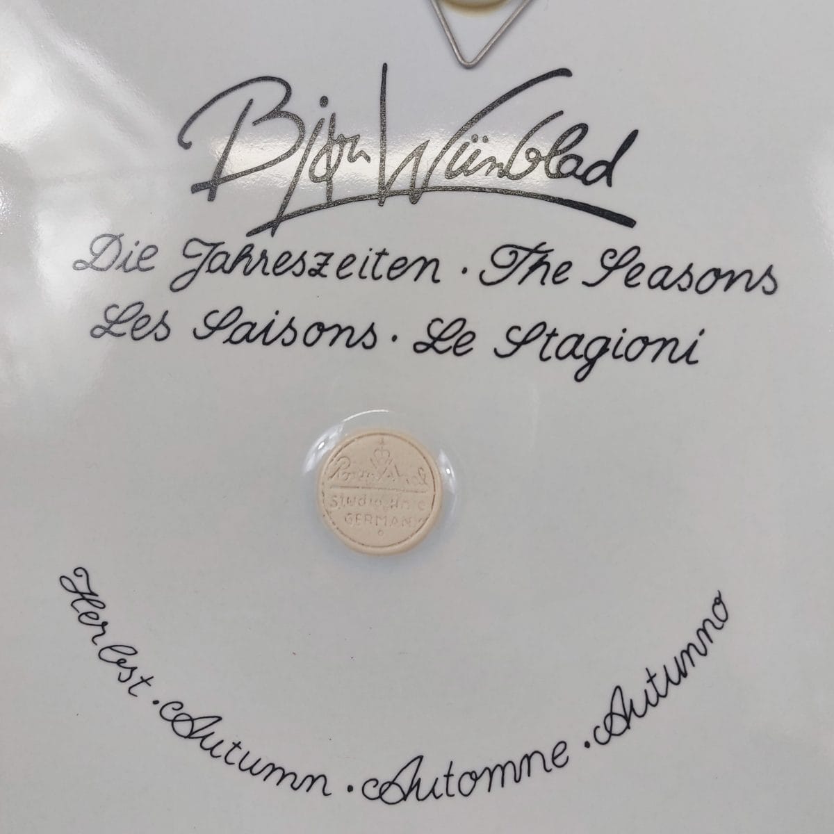Il set comprende i piatti da collezione che rappresentano l’Autunno e l’Inverno, due stagioni magistralmente interpretate da Björn Wiinblad per la prestigiosa Rosenthal Germania Linee Studio. Si tratta di un’edizione limitata che si distingue per i suoi colori brillanti e il suo design fiabesco, tipico dello stile inconfondibile di Wiinblad. Le scene sono suggestive e ricche di dettagli, capaci di catturare l’occhio e l’immaginazione.