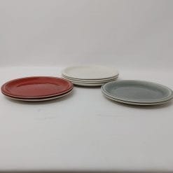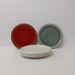 Splendido set piatti Jars France serie Cantine composto da otto piatti in ceramica di alta qualitร , 2 rossi, 2 grigio chiaro e 4 bianchi/beige. Sono ideali come piatti da frutta, dessert o come piatti da antipasto, perfetti per creare un mรฉlange di colori e texture sulla tua tavola.