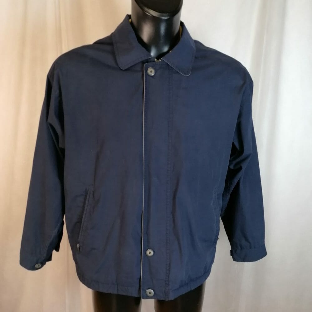 Pierre Cardin giacca da uomo mezza stagione blu in poliestere e cotone. Impermeabile con fodera in pile grigio.
