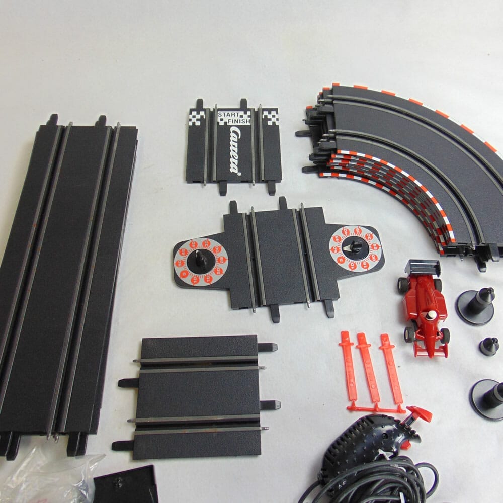 Pista elettrica SUPER FORMULA F1 CARRERA Go! Lunghezza 3,6 m, scala 1:43. Non testata, in discrete condizioni generali. Manca l’auto Petunia. Presenti segni di usura sulla scatola originale. Per i componenti si vedano le foto.