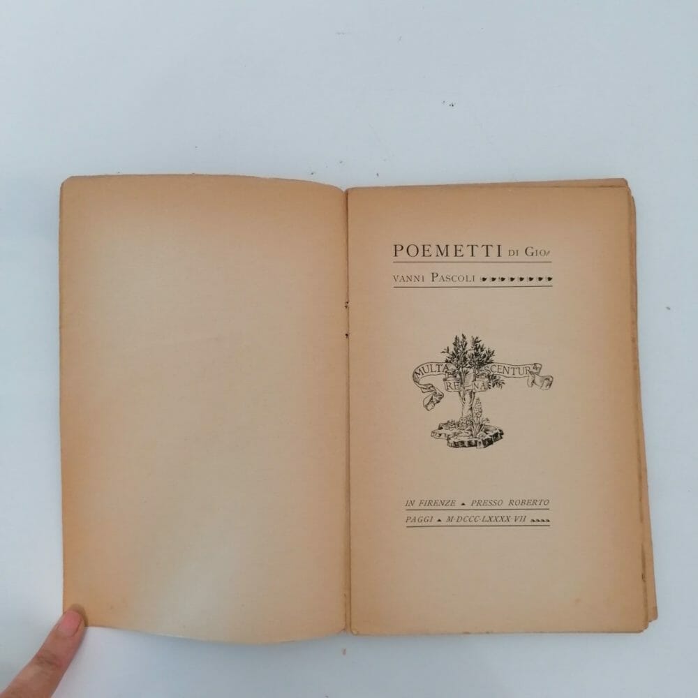 Poemetti di Giovanni Pascoli, 1897, volume antico edito In Firenze, presso Roberto Paggi (per i tipi di L. Franceschini e C.i, collana Multa-Renascentur )