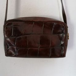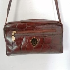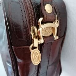 Pollini borsa vintage in pelle con tracolla, elegante colore marrone con finiture di lusso. Modello particolare con stemma.