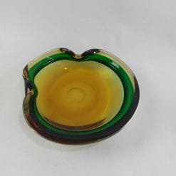 Elegantissimo posacenere o piccola ciotola della metà del secolo scorso in vetro di Murano sommerso, una tecnica sviluppata a Murano negli anni Trenta e divenuta molto popolare negli anni Cinquanta – Sessanta. Realizzato in spesso vetro verde e giallo e in ottime condizioni.