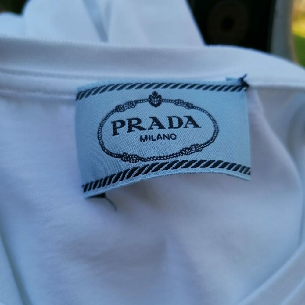 Prada t-shirt bianca originale, modello semplice maglietta a mezze maniche da donna.