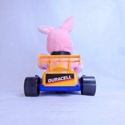 Mascotte anni ’80 della Duracell, Racing Bunny, il protagonista degli spot pubblicitari della casa produttrice di batterie, è diventato pupazzo da collezione. Venduto con la sua scatola originale, si accende ma le ruote non girano. Un bel pezzo da collezione per gli amanti degli anni ’80!
