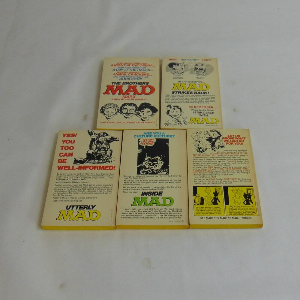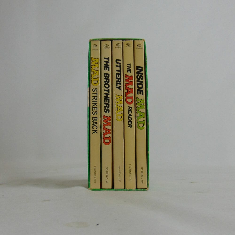Raro cofanetto “Classically MAD” con una raccolta di 5 numeri della celebre rivista di costume e satira americana MAD. Edizione 1954 in ottime condizioni, compreso il cofanetto. Per i titoli inclusi nel cofanetto, si veda descrizione dettagliata.