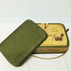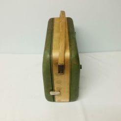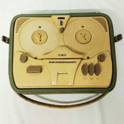 Registratore a bobine Vegaradio rm 301 portatile, articolo vintage anni 60′ all’interno di una valigetta in stile di colore verde muschio con rifiniture in ottone. Il prodotto è in buono stato ma manca delle bobine e del microfono.