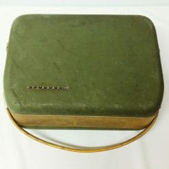 Registratore a bobine Vegaradio rm 301 portatile, articolo vintage anni 60′ all’interno di una valigetta in stile di colore verde muschio con rifiniture in ottone. Il prodotto è in buono stato ma manca delle bobine e del microfono.