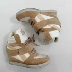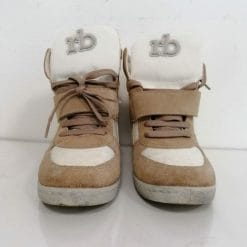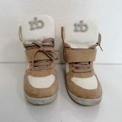 RoccoBarocco scarpe sneakers con zeppa nascosta, in materiale sintetico e pelle. Color crema e marrone, con lacci e velcro, alte alla caviglia.
