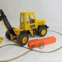 Ruspa elettrica filo-comandata in latta degli anni ’70. In buone condizioni generali, non è stata testata, ma è completa di tutte le sue parti. Originale Zanjadora Clim, made in Spain.