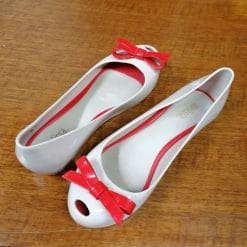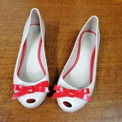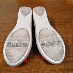 Scarpe Melissa, modello ballerina peep toe in materiale riciclato vegan. Suola 22 cm. Interno 21 cm. Mini-zeppa 2 cm.