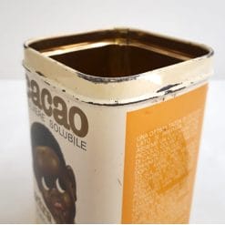 Simpatica scatola del cacao solubile “extra puro” della NOVI, da 300gr. L’oggetto si presenta pulito e in buone condizioni generali; leggeri segni d’uso. La base all’interno presenta ossidazione, il fondo è leggermente “fiorito”