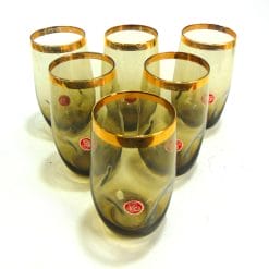 Il collezionismo di articoli vintage raggiunge il suo apice con questo elegante servizio per acqua in cristallo brunito.