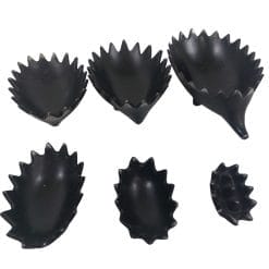 Questo set di posacenere a forma di riccio, realizzato in ottone nero pressofuso, è composto da sei piccole sculture indipendenti. Ogni “aculeo” è in realtà un piccolo posacenere, che, uniti, formano l’intera figura del riccio. Questo design geniale e giocoso è un’autentica testimonianza del talento di Walter Bosse.