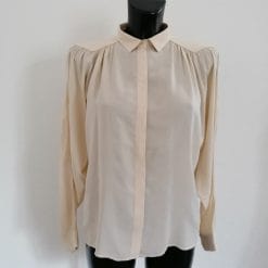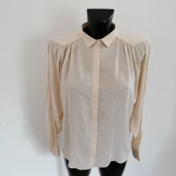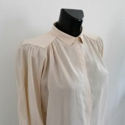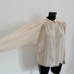 Meravigliosa camicia di pura seta vintage, appena trasparente, elegante color tortora. Materiale di elevatissima qualità abbondante e delicato. Maniche a pipistrello.