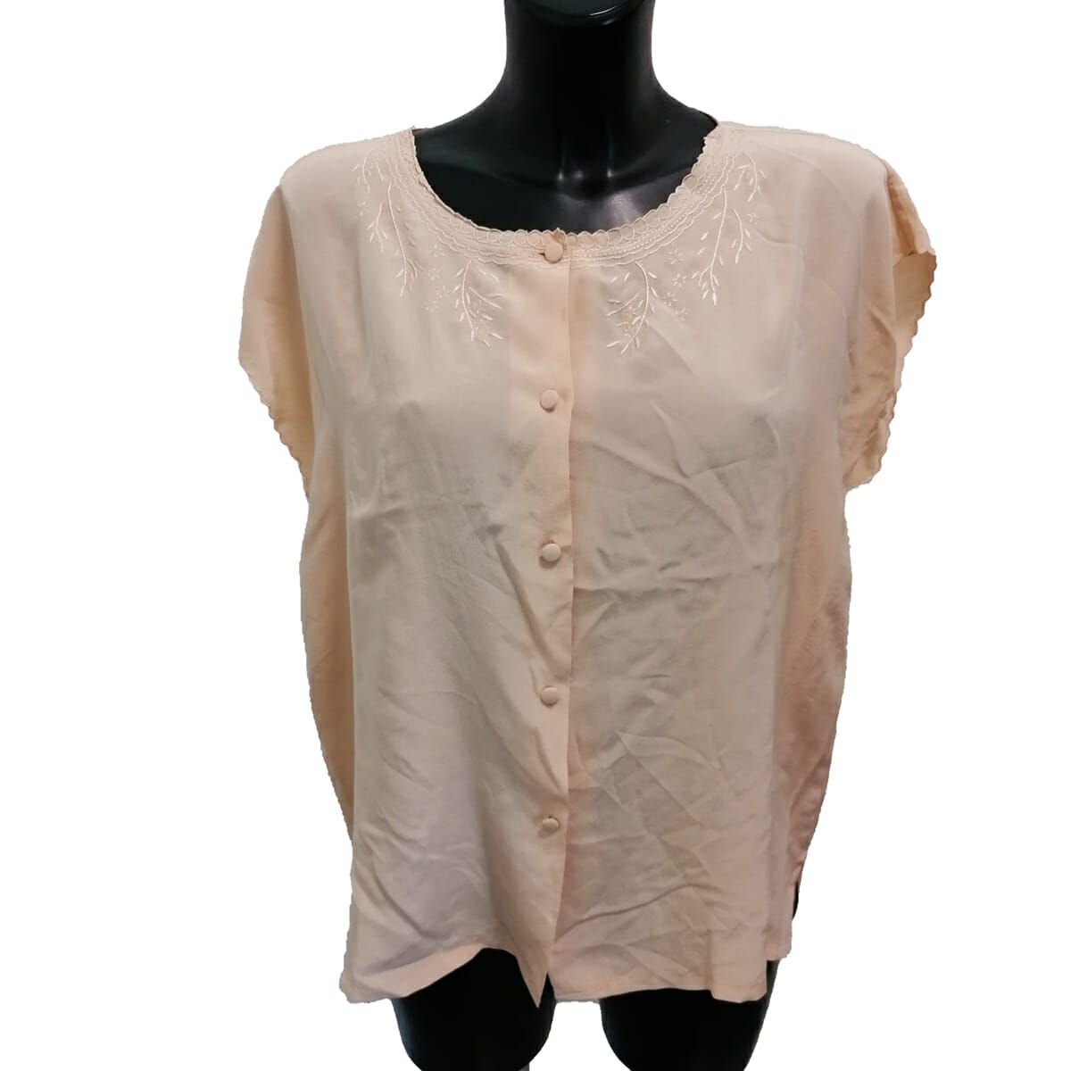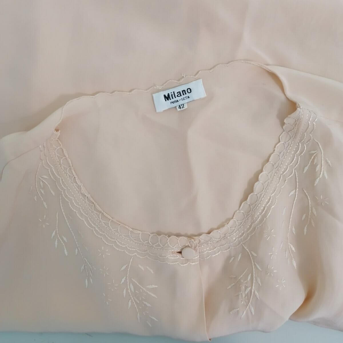 Il colore cipria conferisce un’aura delicata e romantica alla camicetta, completando il suo appeal vintage. Questa camicetta in seta vintage senza maniche è un’aggiunta perfetta al guardaroba di ogni donna che cerca un capo unico, raffinato e intramontabile. Indossala con una gonna a vita alta o pantaloni eleganti per creare un look sofisticato e senza tempo.