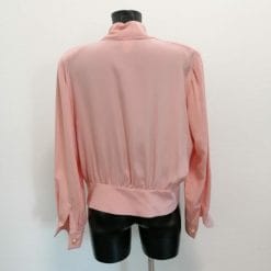 Pura seta camicia vintage rosa, spalle imbottite, due bottoni gioiello e bottoncini nascosti. Elegante e molto ricercata.