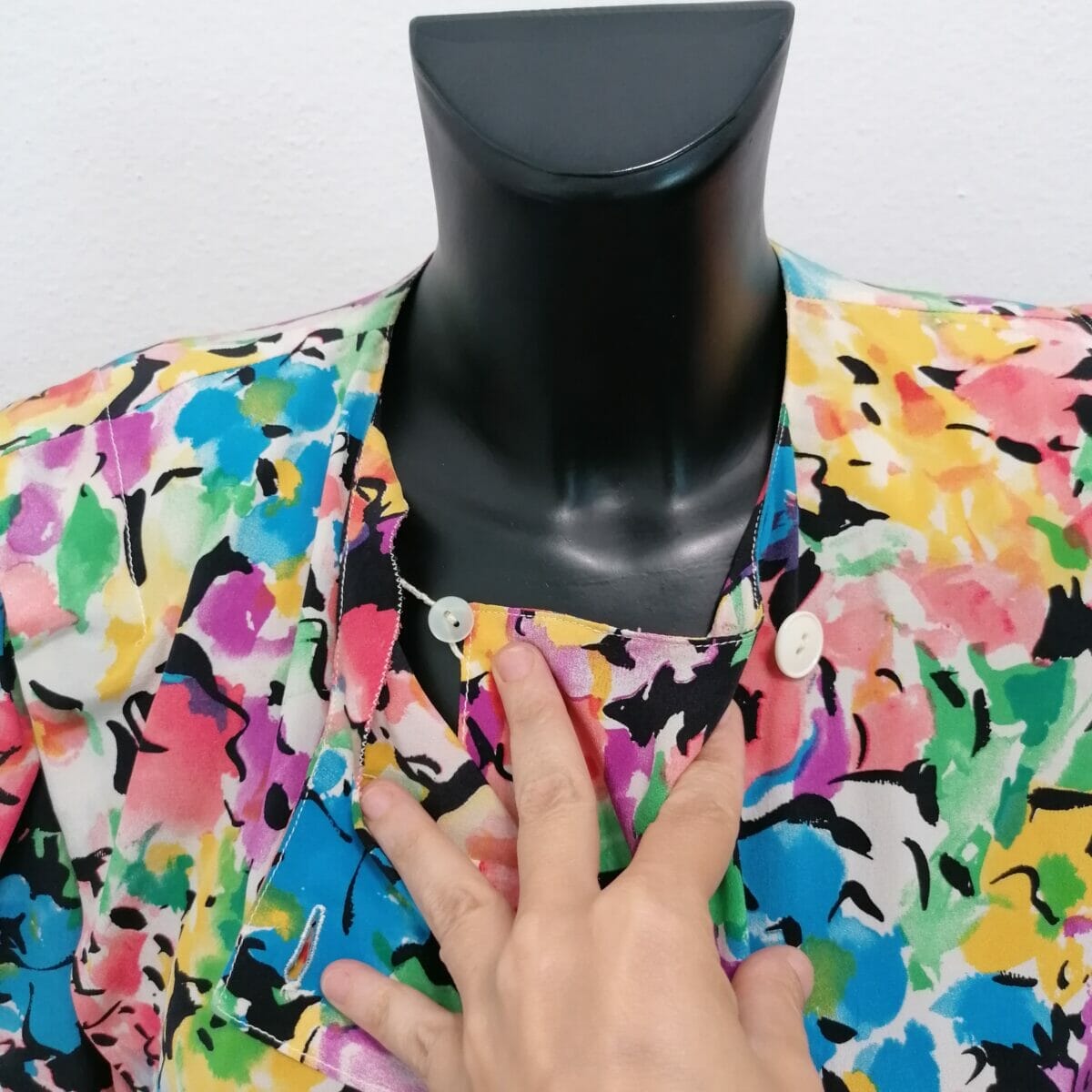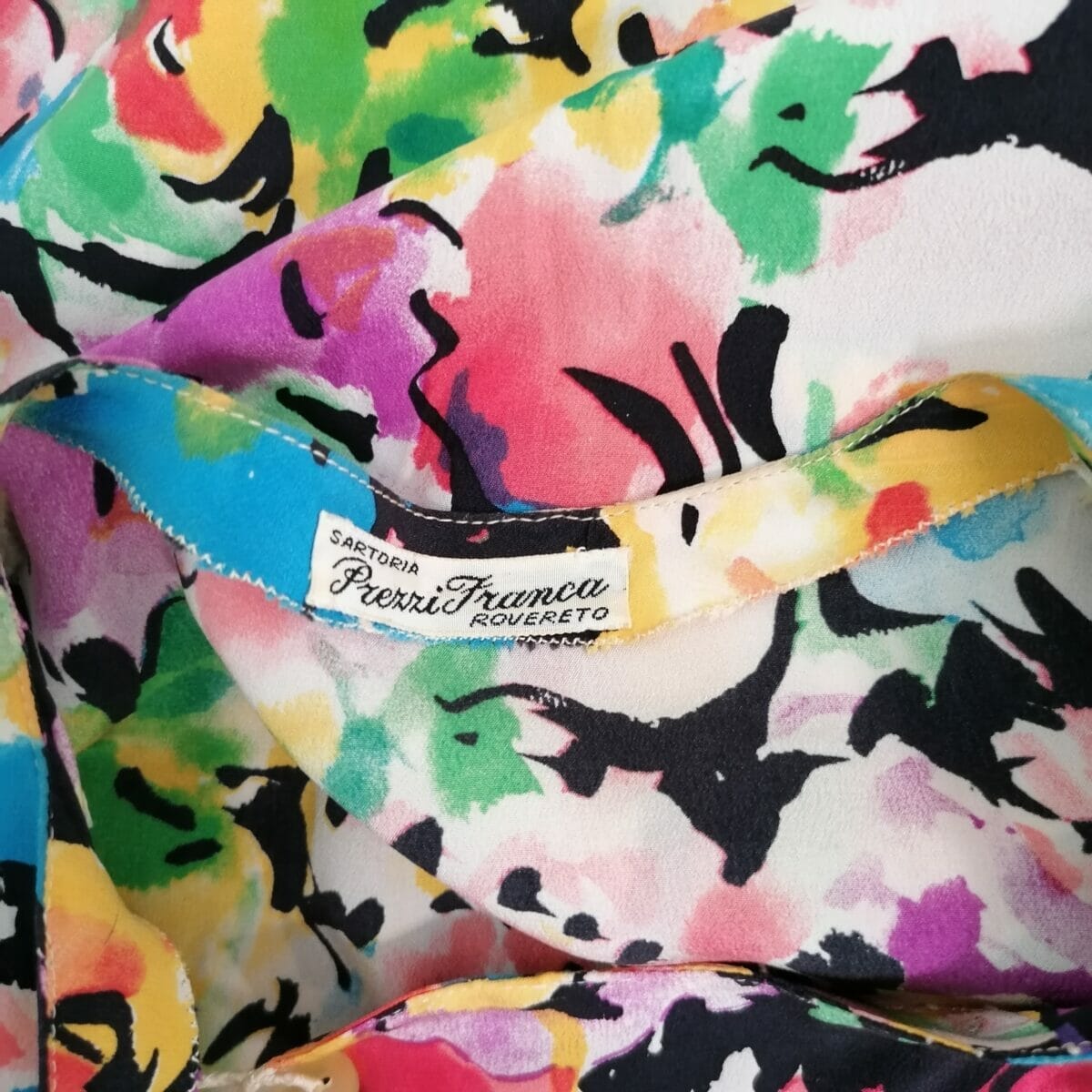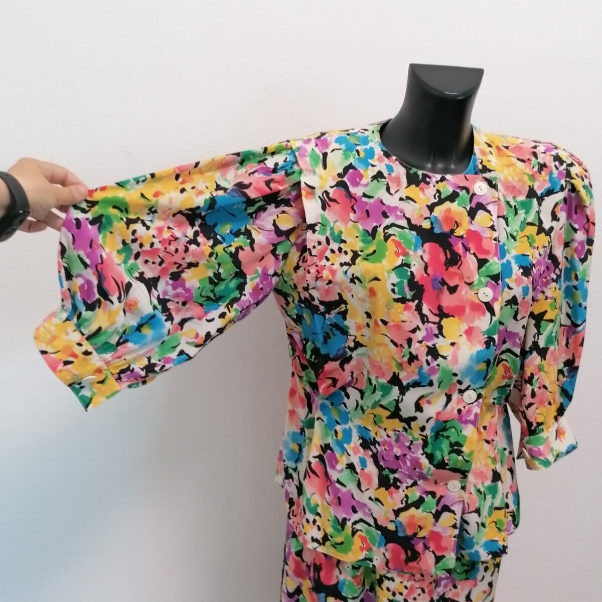 Indossare questo completo gonna e casacca elegante vintage in seta coloratissimo a fiori significa abbracciare uno stile distintivo e audace, che combina la bellezza del passato con un tocco di modernità. Sarà sicuramente una scelta di moda che attira l’attenzione e si distingue per la sua eleganza senza tempo.