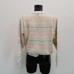 Sisley vintage maglione leggero in filo di cotone 100% colore ecru a righe azzurre e rosa. Perfetto per la mezza stagione o per le sere di primavera.