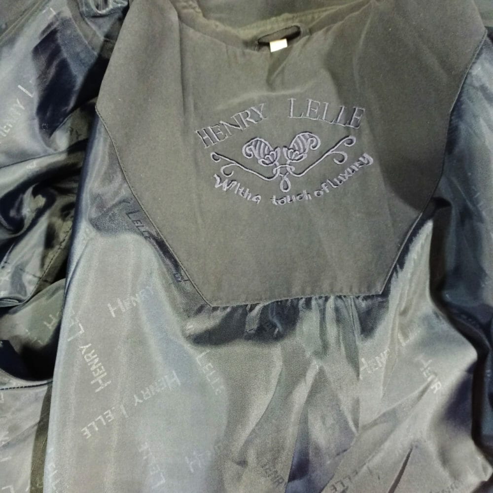 Soprabito elegante Henry Lelle in acrilico effetto manopesca, colore navy. Abbottonatura nascosta, con dettagli in metallo. Due tasche anteriori, spalle imbottite.