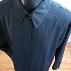 Soprabito / trench Giorgio Armani vintage d’incredibile eleganza, blu navy. Allacciatura nascosta, foderato, con spacco sul retro.