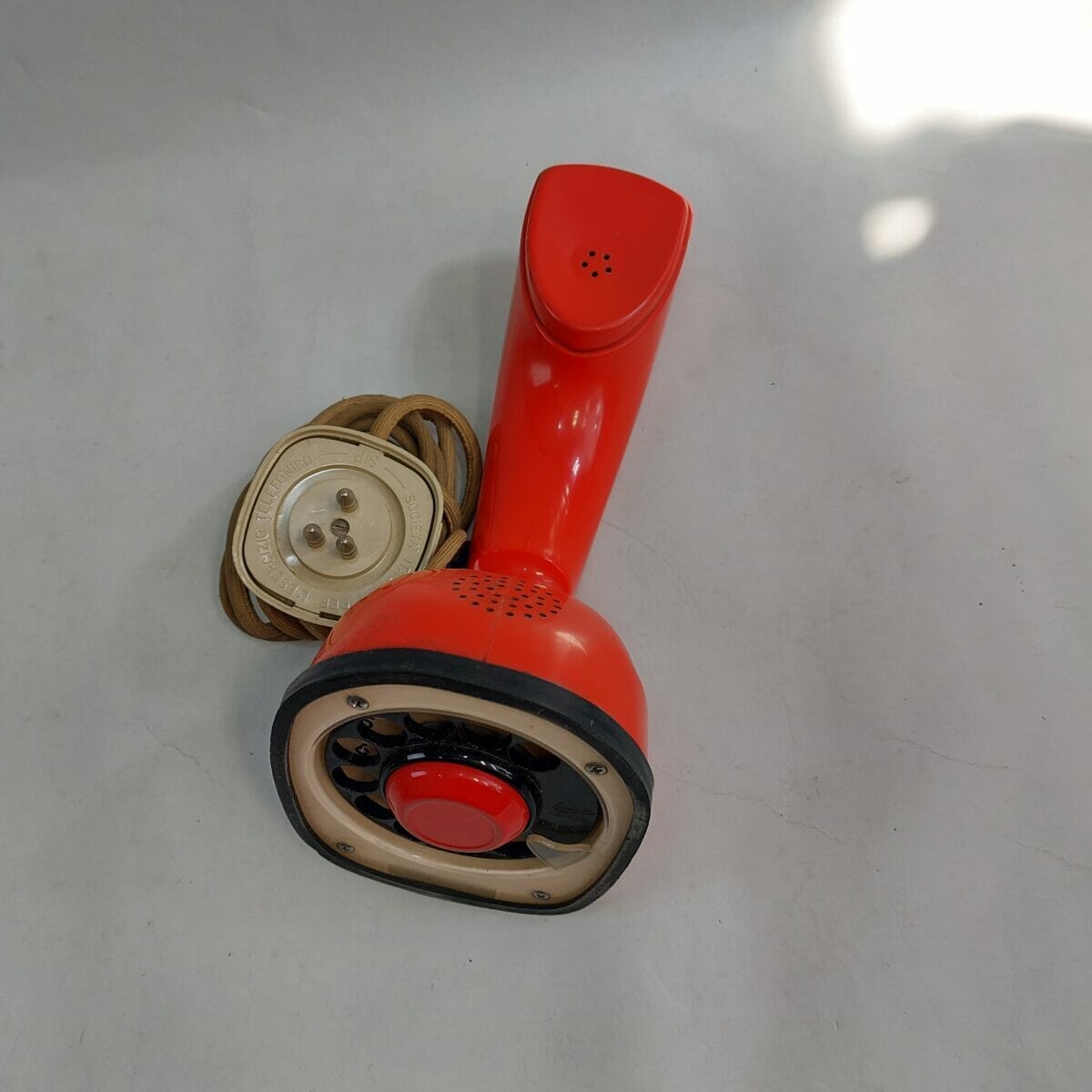 Telefono vintage Ericofon rosso prodotto dall’azienda svedese Ericsson a partire dagli anni ’40.