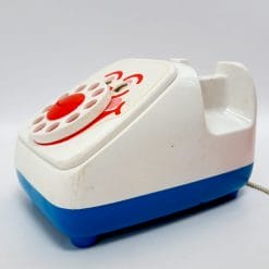 Bellissimo Telefono Parlante della TOMY; giocattolo anni ’80. Quando si seleziona un numero, girando il disco, il telefono parla con frasi diverse. L’oggetto รจ pulito e funzionante; presenta leggeri segni d’uso.