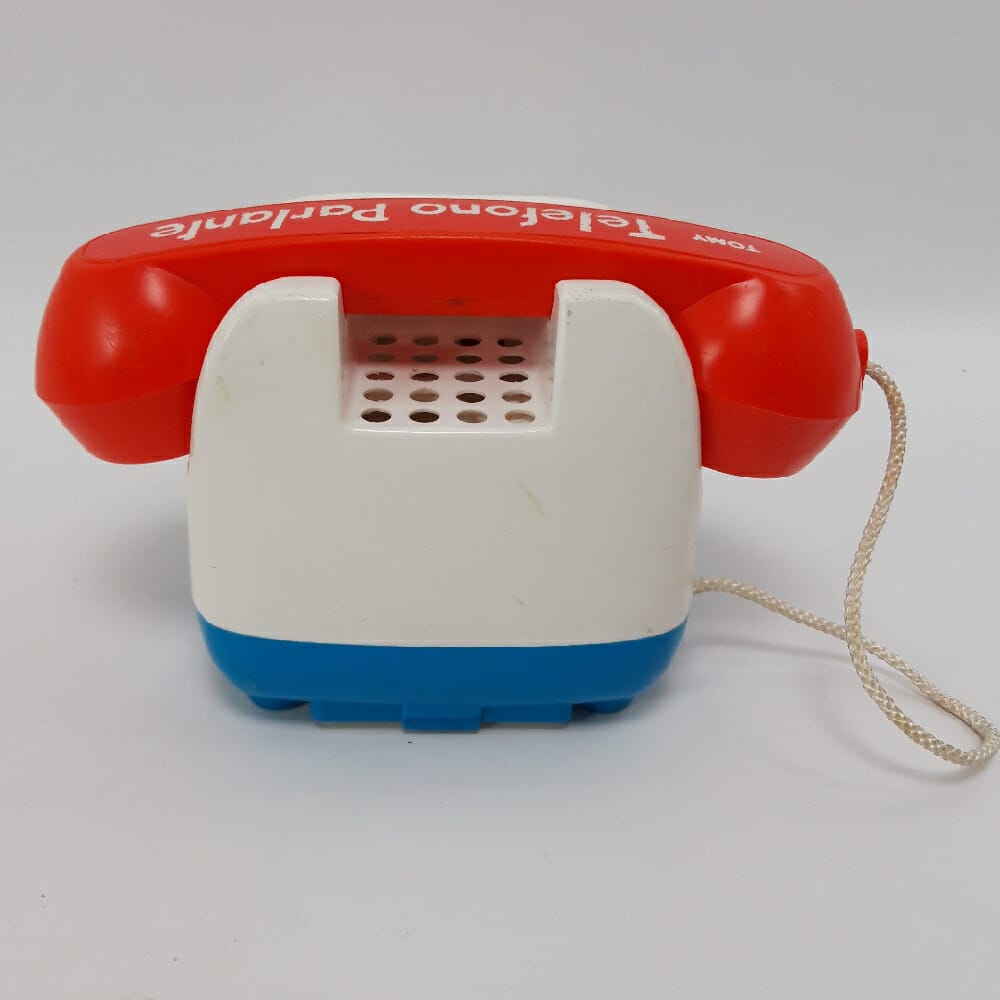 Bellissimo Telefono Parlante della TOMY; giocattolo anni ’80. Quando si seleziona un numero, girando il disco, il telefono parla con frasi diverse. L’oggetto รจ pulito e funzionante; presenta leggeri segni d’uso.