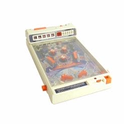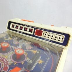 Il gioco senza tempo del flipper, in una versione vintage del 1979: Tomy Atomic Arcade Pinball. Testato: si accende ma non funzionano nè il counter nè i sensori della pallina, si accende con 4 pile torcia non incluse. Esternamente buone condizioni generali, solo qualche piccolo graffio sulla protezione trasparente dovuto all’usura e un adesivo del precedente proprietario incollato sul fondo.