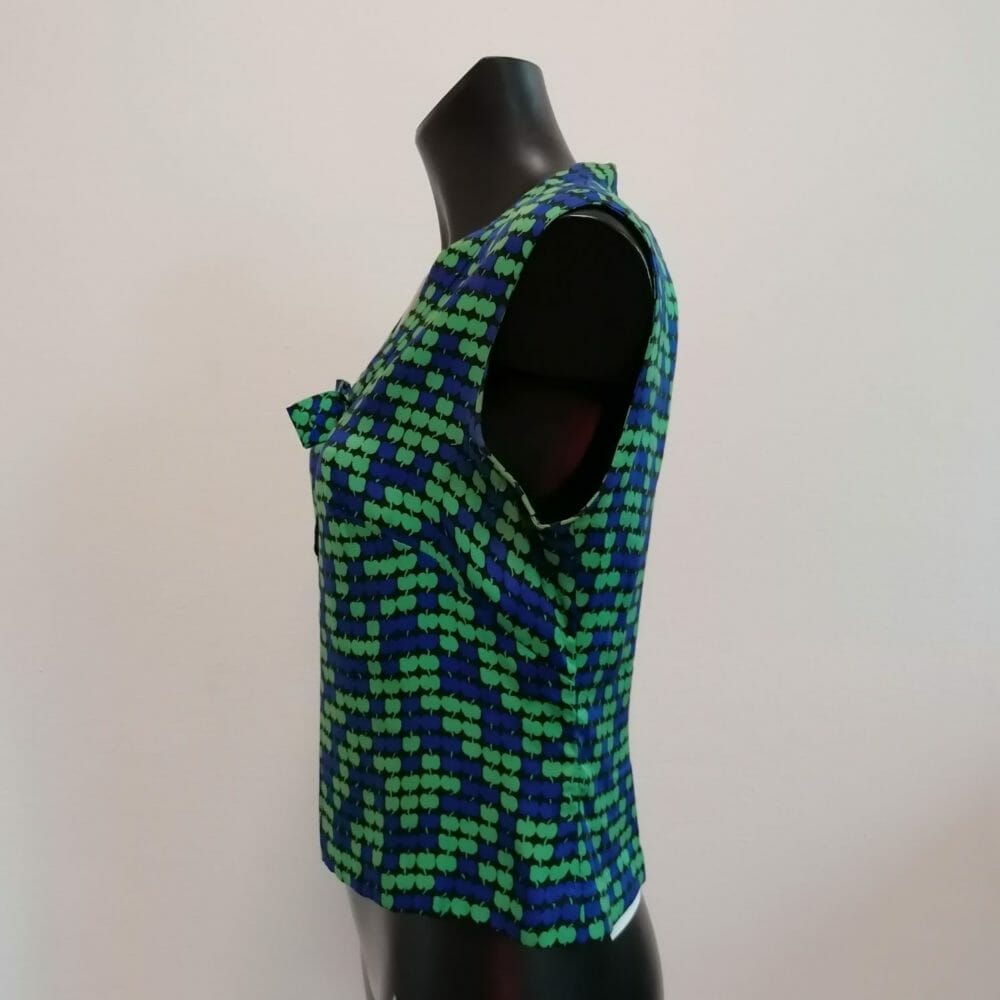 Perfetto capo estivo, un top sbarazzino perfetto anche per le occasioni un po’ formali. Gusto retro senza esagerare, sobrio e femminile ma con una bella fantasia colorata.