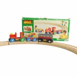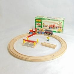 Set completo di pista, trenino e accessori della storica marca svedese Brio, che dal 1800 produce trenini in legno in tutto il mondo, conservando un’elevatissima qualità. Il kit comprende parti di pista per costruire un cerchio e, oltre a quanto visualizzato sulla scatola originale, contiene anche un passaggio a livello, un vagone e un rettilineo provenienti da altri set. Ottimo per completare o allungare piste di altri set o per arricchire con gli accessori inclusi.